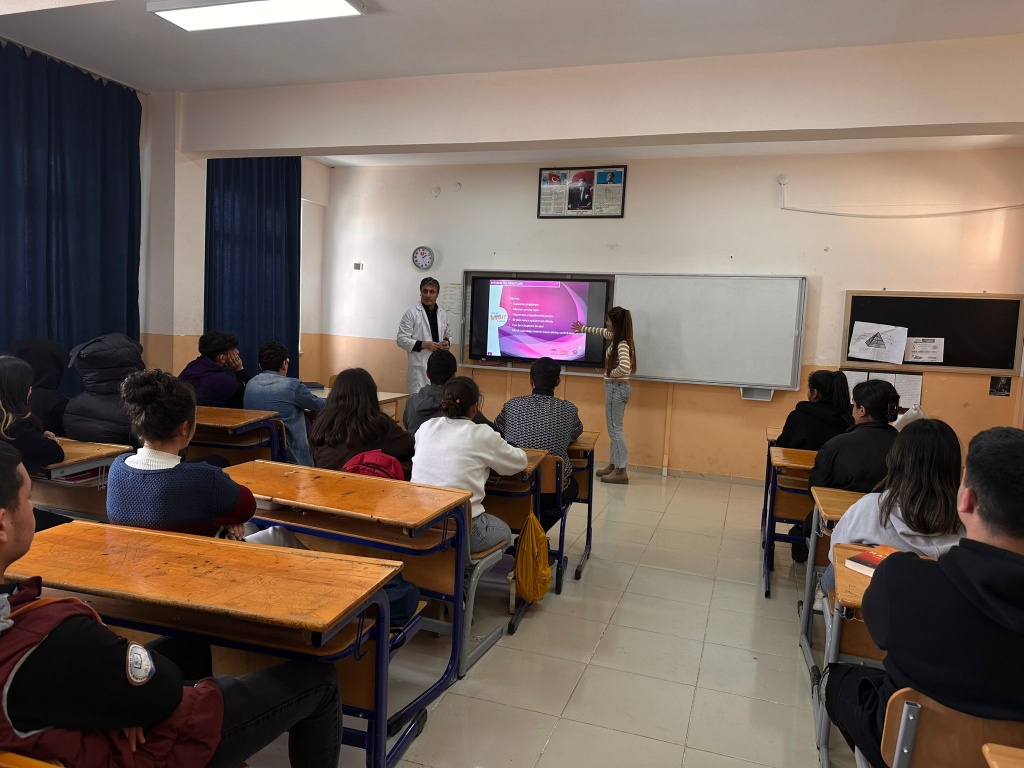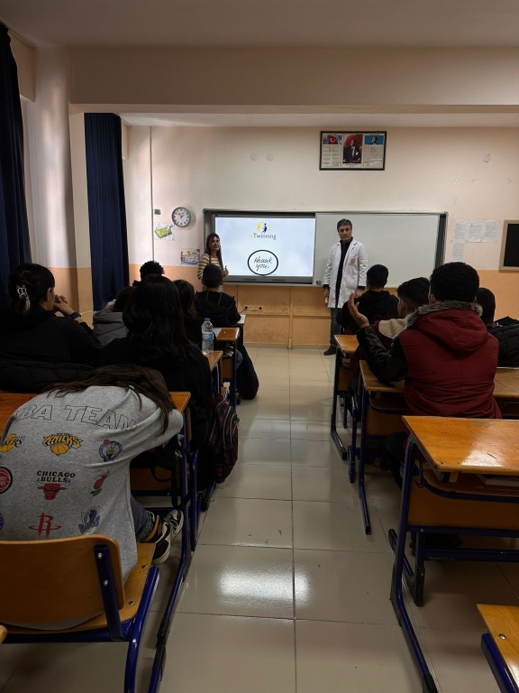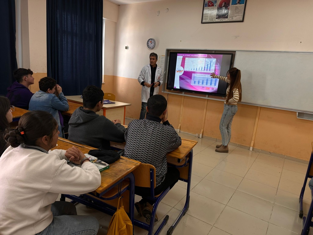 Okulumuz coğrafya öğretmeni Mucip ÖZCAN ve İngilizce Öğretmenimiz Songül AKDENİZ tarafından öğrencilerimize bilinçli internet kullanımı hakkında seminer verildi.