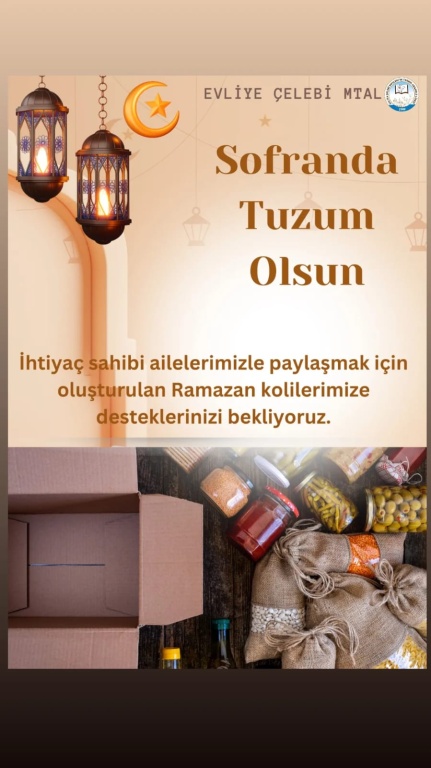 Ramazan ayı vesilesi ile öğrencilerimiz ile işbirliği yaparak temel gıda malzemelerinden oluşan erzak kolileri hazırlayarak ihtiyaç sahibi ailelere ulaştırdık.