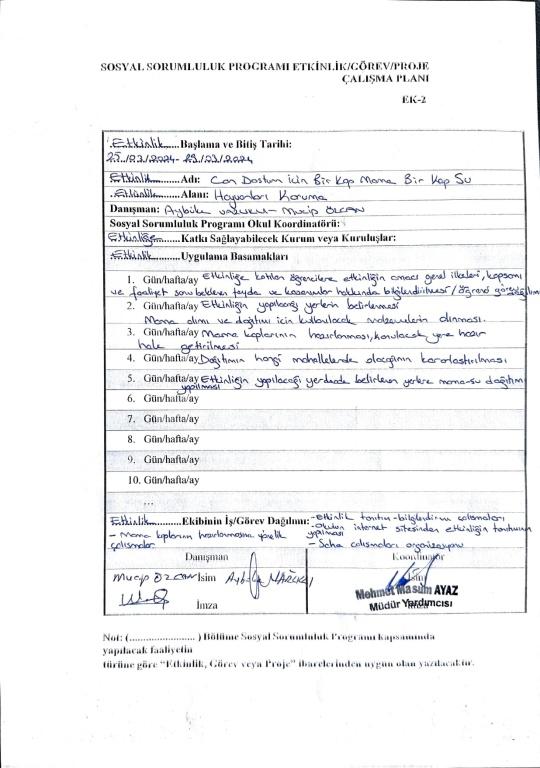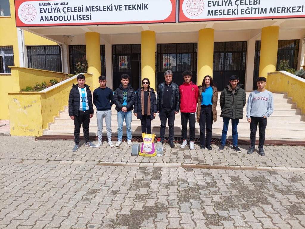 Sosyal sorumluluk projesi kapsamında sokak hayvanlarını koruma projesi kapsamında Evliya Çelebi MTAL öğrencilerimiz "Can Dostlarımız' için mardin bölgesinde mama ve su dağıtımı yapmışlardır.